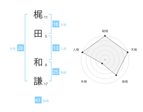梶田 和謙さんの総格は41画の5点!
