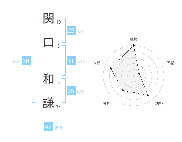 関口 和謙さんの総格は47画の5点!