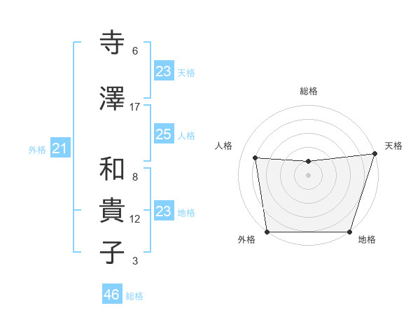 寺澤 和貴子さんを姓名の画数から五運を鑑定