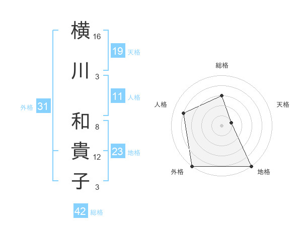 横川 和貴子さんを姓名の画数から五運を鑑定