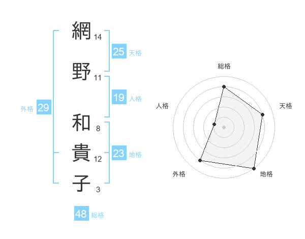 網野 和貴子さんを姓名の画数から五運を鑑定