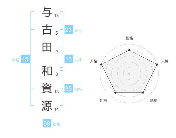 与古田 和資源さんの天格は23画の5点!