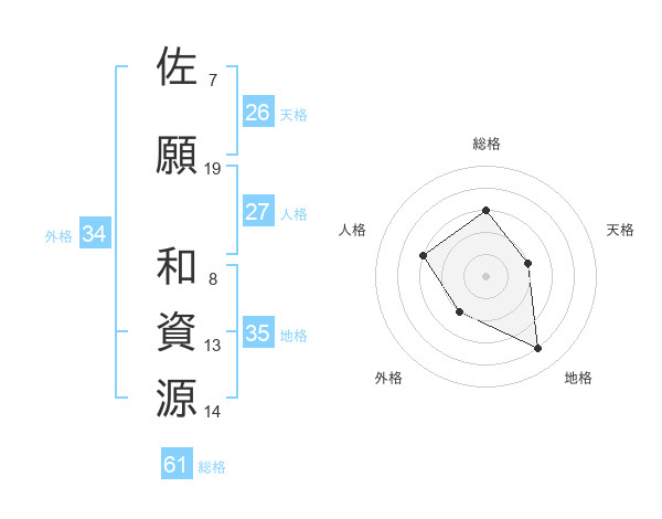 佐願 和資源さんを姓名の画数から五運を鑑定