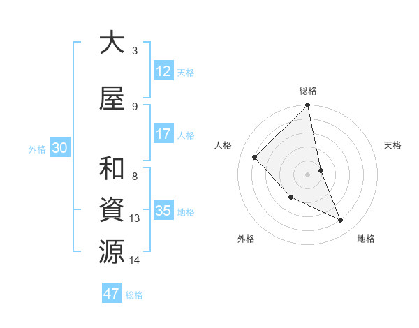 大屋 和資源さんの総格は47画の5点!