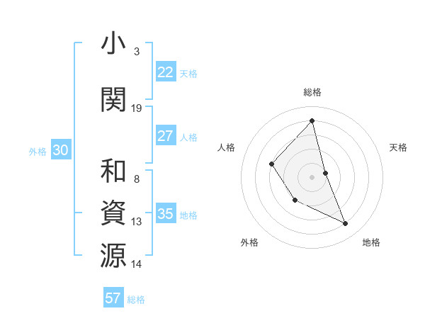 小関 和資源さんの総格は57画の4点