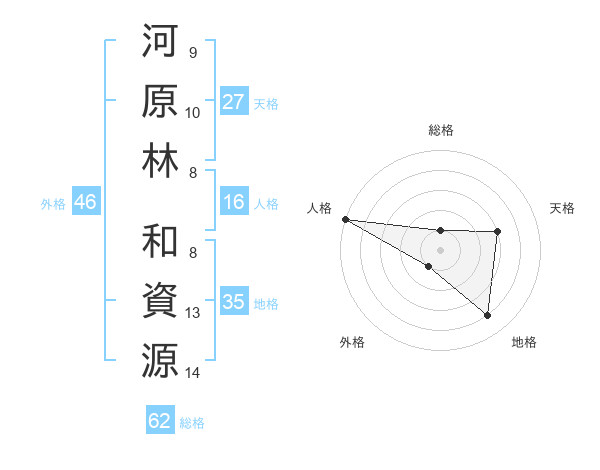 河原林 和資源さんを姓名の画数から五運を鑑定