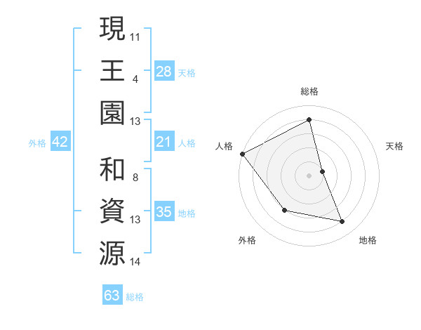 現王園 和資源さんを姓名の画数から五運を鑑定