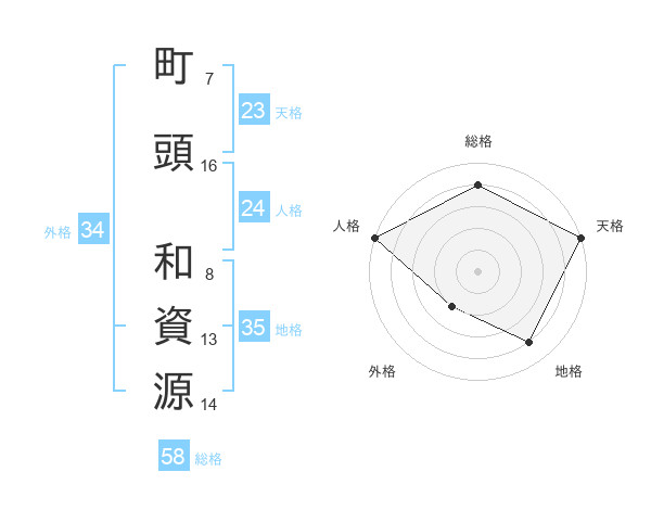 町頭 和資源さんの総格は58画の4点!