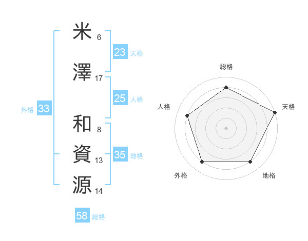 米澤 和資源さんを姓名の画数から五運を鑑定