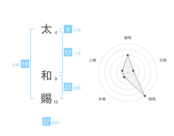 太 和賜さんの地格は23画の5点!