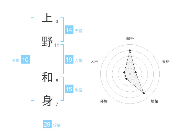 上野 和身さんの総格は29画の4点!