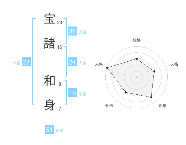 宝諸 和身さんを姓名の画数から五運を鑑定
