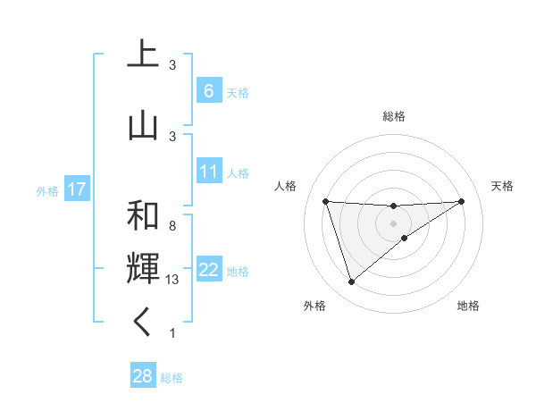上山 和輝くさんの天格は6画の4点!