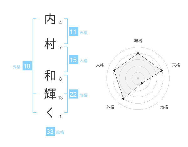 内村 和輝くさんの総格は33画の4点!