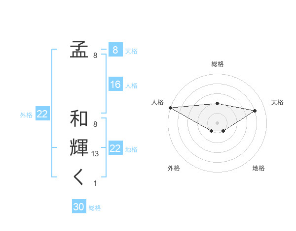 孟 和輝くさんの地格は22画の1点!