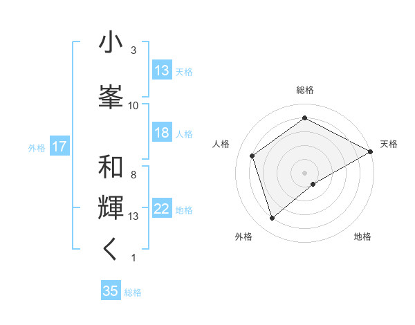 小峯 和輝くさんを姓名の画数から五運を鑑定