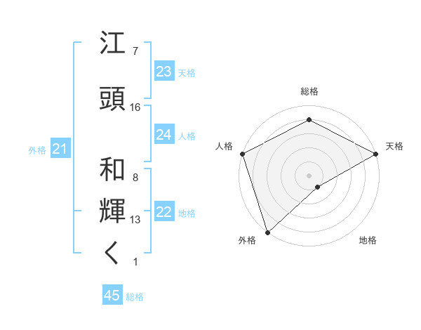 江頭 和輝くさんを姓名の画数から五運を鑑定