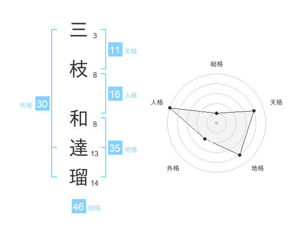 三枝 和達瑠さんの天格は11画の4点!