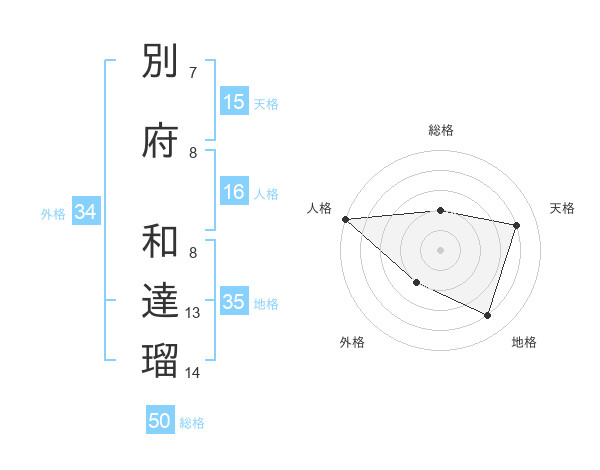 別府 和達瑠さんを姓名の画数から五運を鑑定