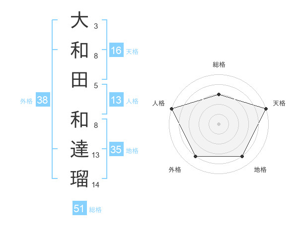 大和田 和達瑠さんを姓名の画数から五運を鑑定
