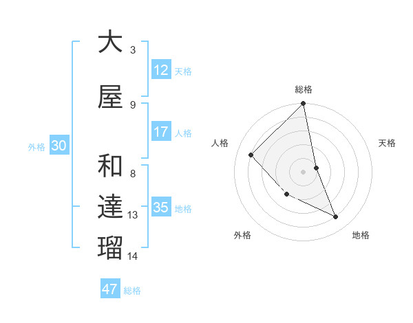 大屋 和達瑠さんを姓名の画数から五運を鑑定