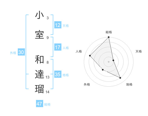 小室 和達瑠さんを姓名の画数から五運を鑑定