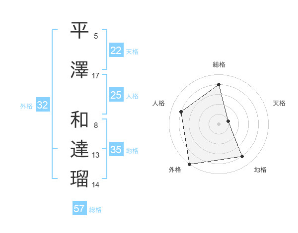 平澤 和達瑠さんの外格は32画の5点!