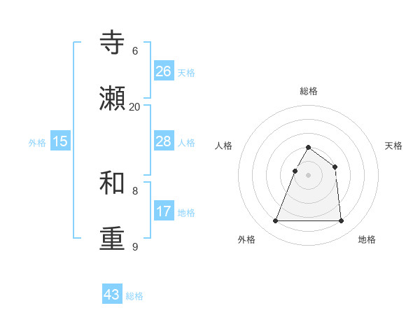 寺瀬 和重さんを姓名の画数から五運を鑑定