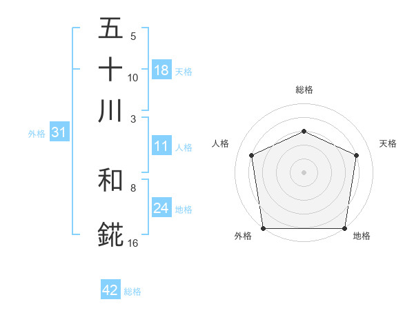 五十川 和錵さんを姓名の画数から五運を鑑定