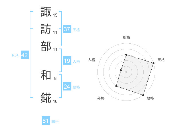 諏訪部 和錵さんの総格は61画の3点!