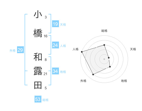小橋 和露田さんを姓名の画数から五運を鑑定