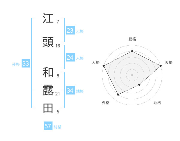 江頭 和露田さんを姓名の画数から五運を鑑定
