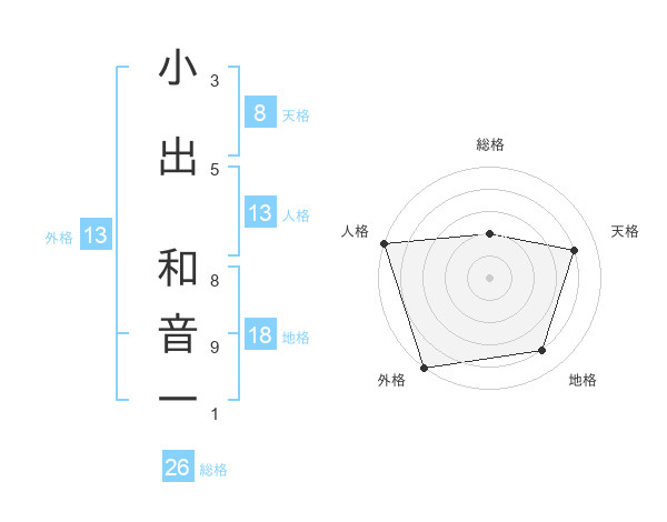 小出 和音一さんの外格は13画の5点!