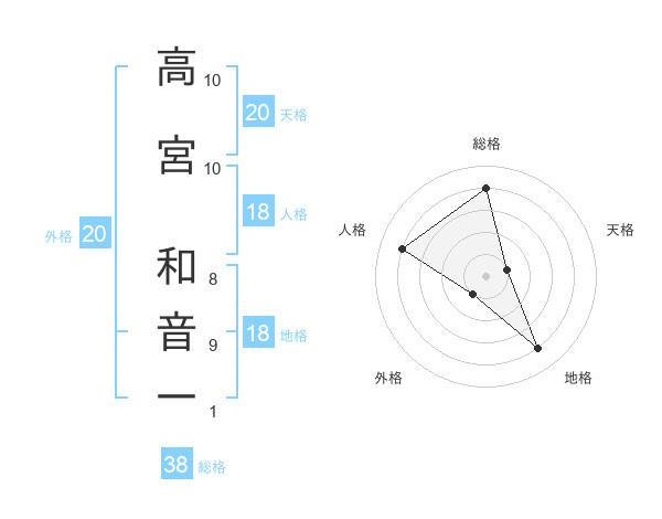 高宮 和音一さんを姓名の画数から五運を鑑定