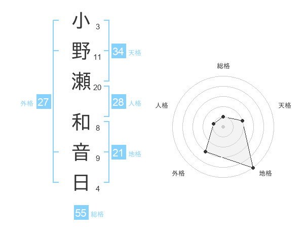 小野瀬 和音日さんの天格は34画の2点!