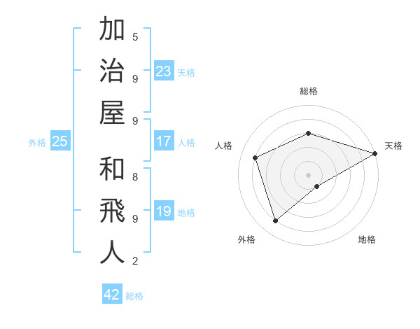 加治屋 和飛人さんを姓名の画数から五運を鑑定