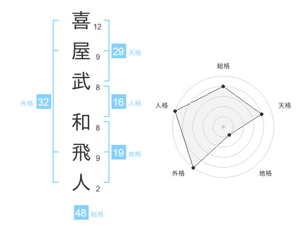 喜屋武 和飛人さんを姓名の画数から五運を鑑定