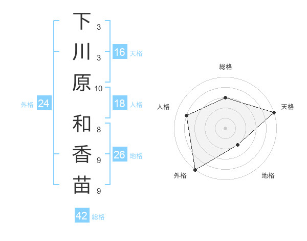 下川原 和香苗さんを姓名の画数から五運を鑑定