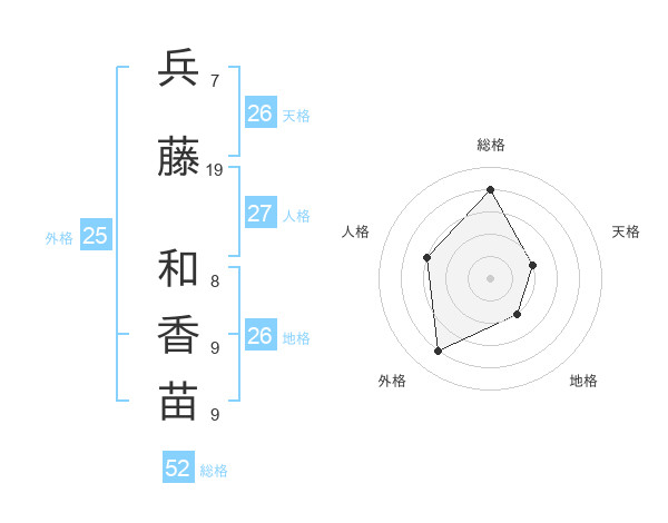兵藤 和香苗さんを姓名の画数から五運を鑑定