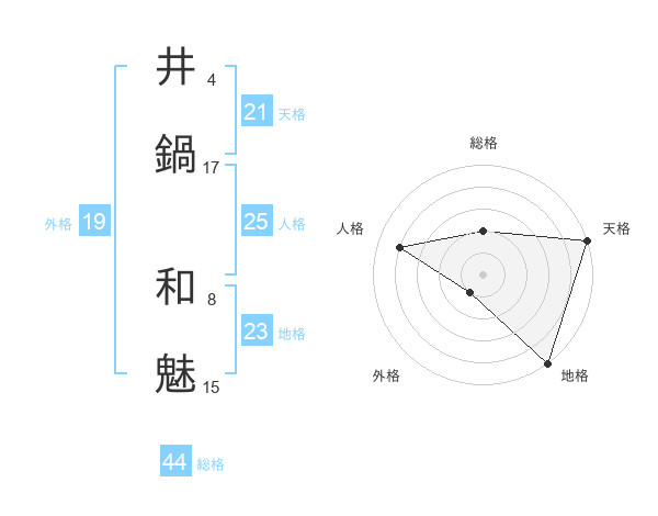 井鍋 和魅さんの天格は21画の5点!
