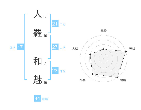 人羅 和魅さんを姓名の画数から五運を鑑定
