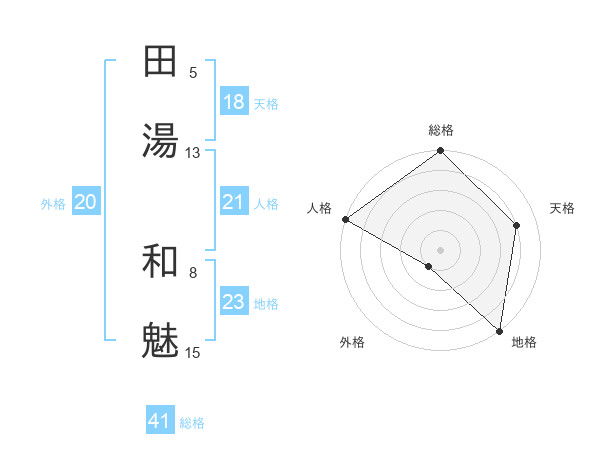 田湯 和魅さんを姓名の画数から五運を鑑定
