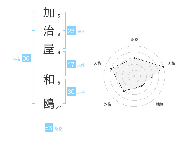 加治屋 和鴎さんの総格は53画の3点