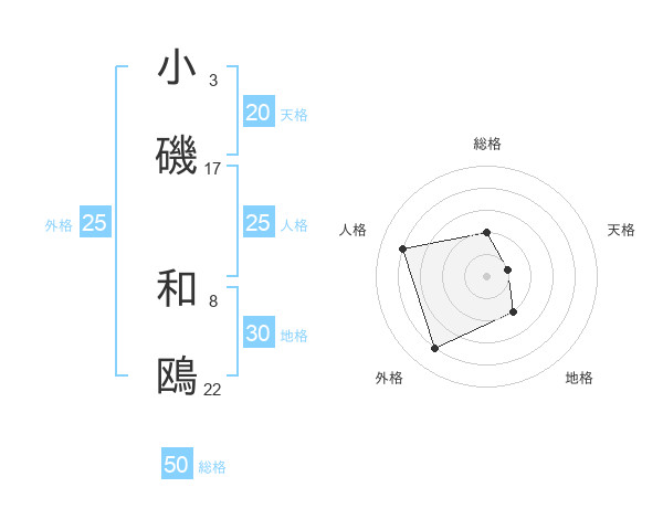 小磯 和鴎さんを姓名の画数から五運を鑑定