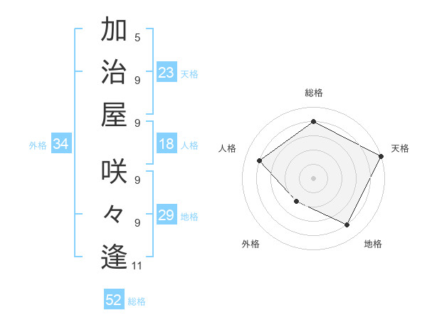 加治屋 咲々逢さんを姓名の画数から五運を鑑定