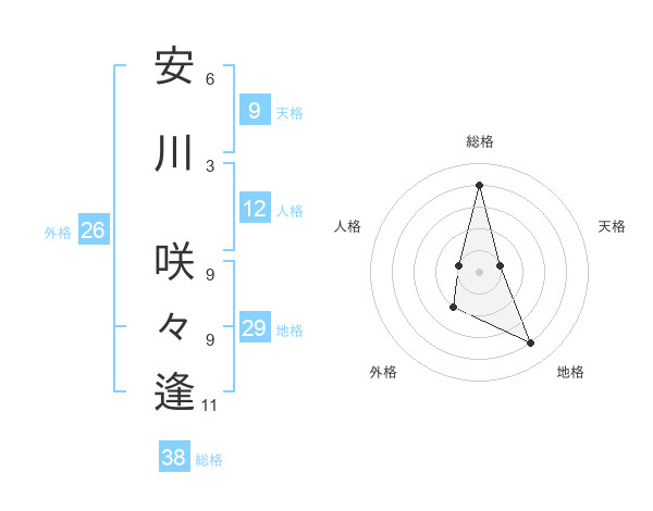 安川 咲々逢さんを姓名の画数から五運を鑑定