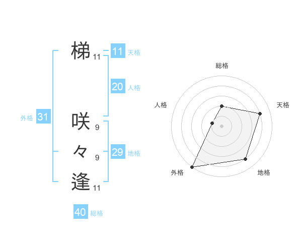 梯 咲々逢さんの外格は31画の5点!