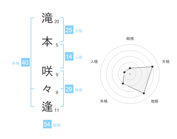 滝本 咲々逢さんを姓名の画数から五運を鑑定