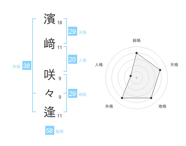 濱﨑 咲々逢さんの総格は58画の4点!