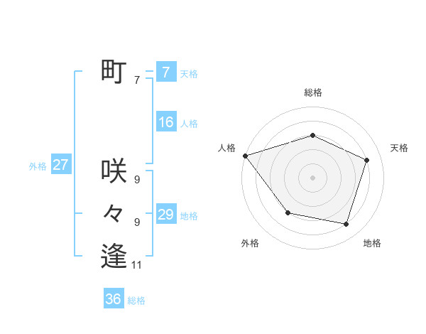 町 咲々逢さんの外格は27画の3点!